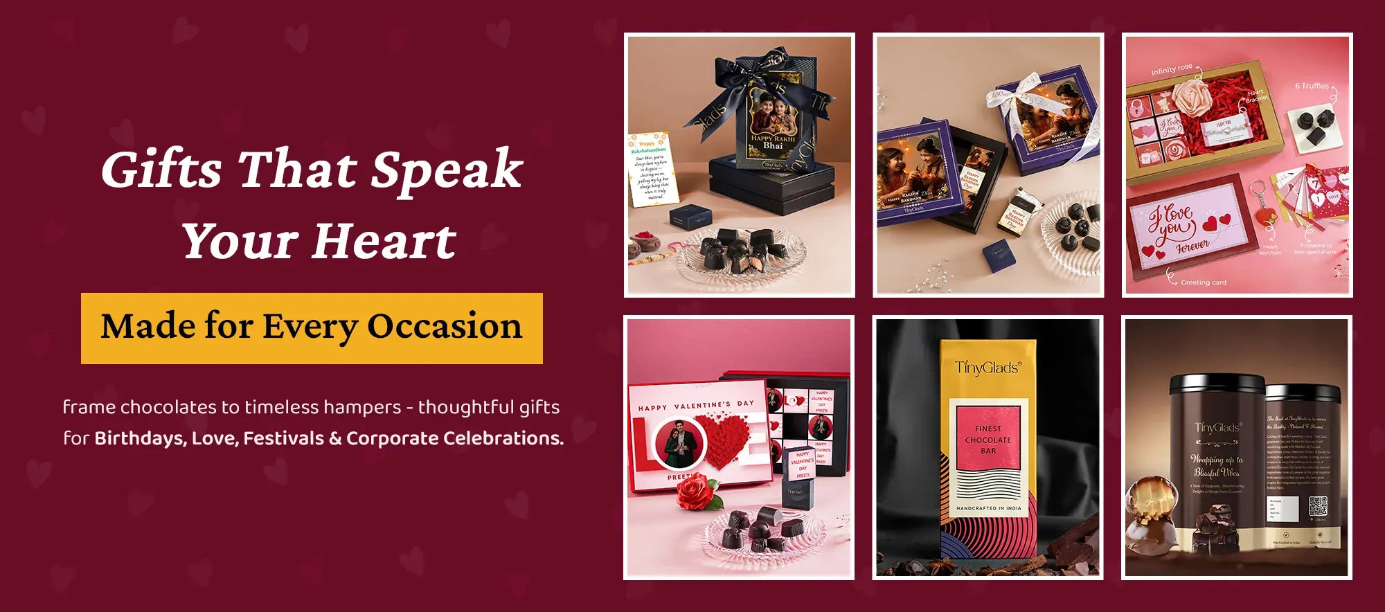 We believe gifting should be personal, thoughtful, and memorable. With special prices and unique customization options, TinyGlads ensures your team members, clients, and partners feel truly valued. Make every occasion extraordinary with our premium, handcrafted chocolates.