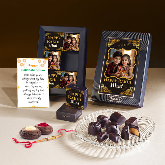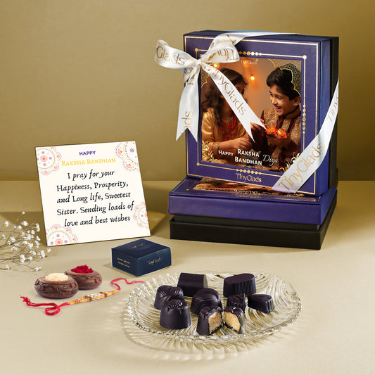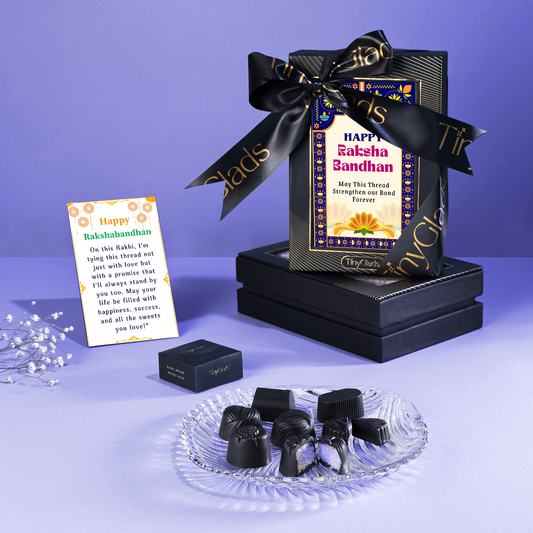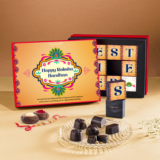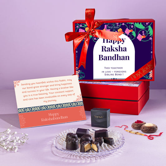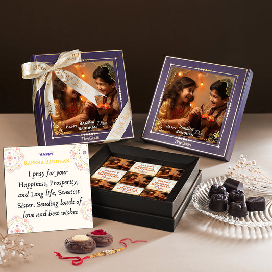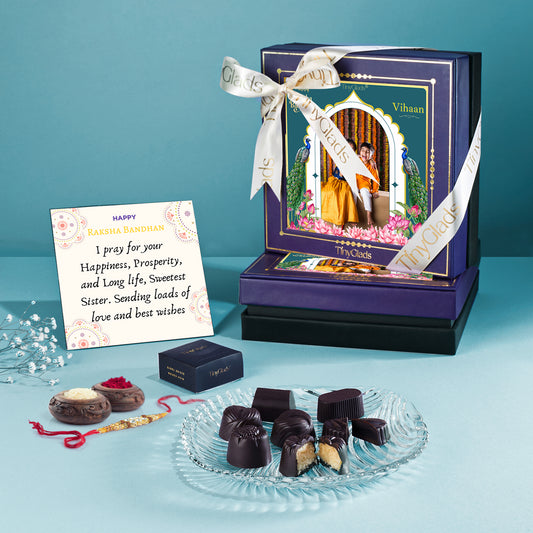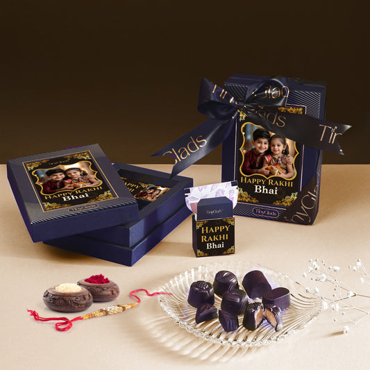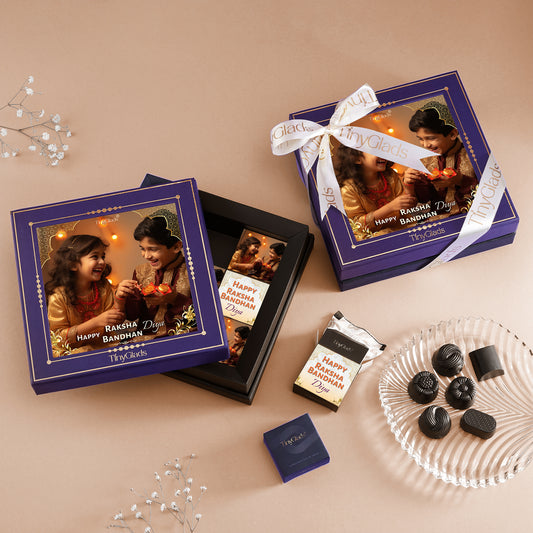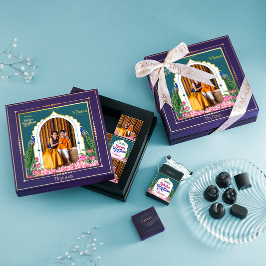 This Raksha Bandhan, surprise your sibling with a personalised chocolate gift from TinyGlads. Choose from a wide range of handcrafted chocolates designed with names, messages, and festive themes. Each gift is made using premium ingredients and custom-wrapped to match the occasion. Whether it’s for your sister or brother, our chocolate boxes are created to delight, celebrate, and bring a smile. Add a personal note or photo and turn a sweet treat into a cherished memory. Explore the best chocolate gifts online and make this Rakhi truly special.