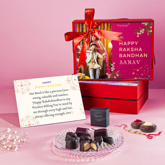 Celebrate Raksha Bandhan special chocolate gift that goes beyond the usual. Shop now and find the perfect personalised chocolate gifts that your sibling will always remember.