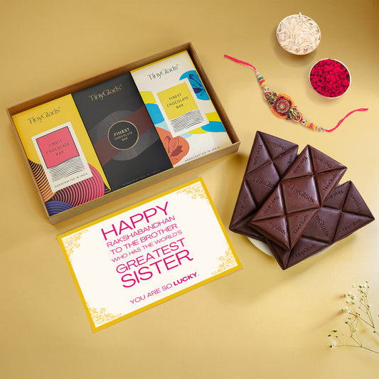 Each bar comes wrapped in vibrant, festive designs, making it perfect for Rakhi. Whether she’s a chocolate lover or simply enjoys thoughtful surprises, this gift is bound to make her smile.
